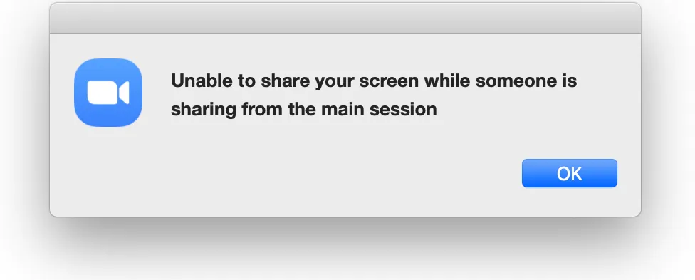However, note that if you enable screen sharing from the main room while someone is sharing their screen in the breakout room, the screen sharing in the breakout room will be disabled. Also, if you enable screen sharing in the main room, participants in the breakout room will not be able to share screens. (Remember to stop screen sharing from the main room when it is no longer necessary to do so.)