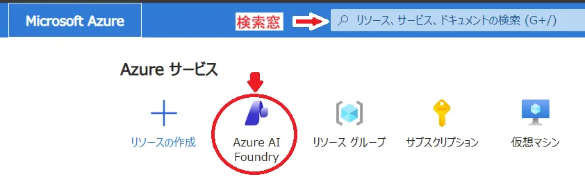 • 一覧に無い場合,Portal 画面上部にある検索窓にAzure AI FoundryFoundryなどと入力すると表示されます.