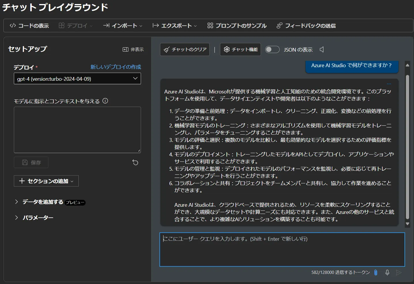 • チャットプレイグランドが下図のようになりましたら完了です.