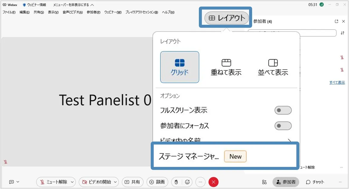 ステージマネージャー(Webex Webinarsのみ)